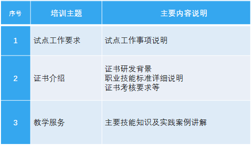 為積極推進工業(yè)機器人操作與運維、虛擬現(xiàn)實應(yīng)用開發(fā)、互聯(lián)網(wǎng)軟件測試、制造執(zhí)行系統(tǒng)實施與應(yīng)用、大數(shù)據(jù)工程化處理與應(yīng)用、人工智能前端設(shè)備應(yīng)用職業(yè)技能等級證書試點實施工作,北京新奧時代科技有限責(zé)任公司依據(jù)《關(guān)于組織開展1+X證書制度試點院校教師培訓(xùn)的通知》(教師司函〔2019〕43號)文件要求,推出教師線上培訓(xùn)專題會議活動。